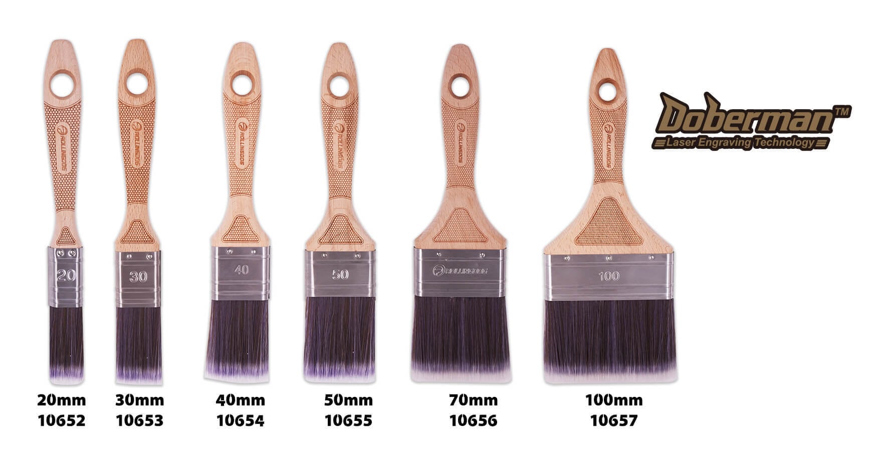DOBERMAN™ペイントブラシシリーズは、優れた塗装性能と快適な使用感を兼ね備えた高品質ブラシです。機械加工によるラフ加工済みのソリッドラウンドテーパー毛を採用し、塗料の含みが良く、均一で滑らかな仕上がりを実現します。