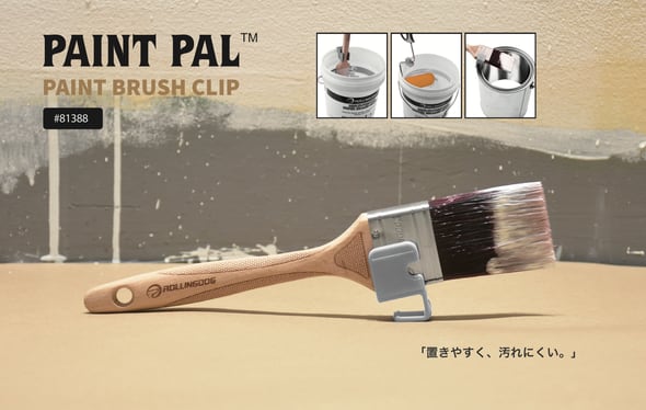 クリップをブラシに取り付けることにより、塗料缶に引っ掛けて使用可能